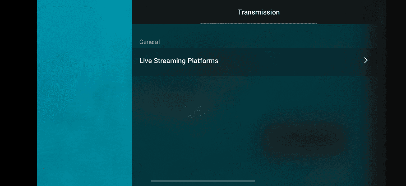In the Fly app, navigate from the Go Fly screen to the settings by tapping the three dots in the top right. Then choose Transmission and select Live Streaming Platforms. Here you will enter your RTMP address.