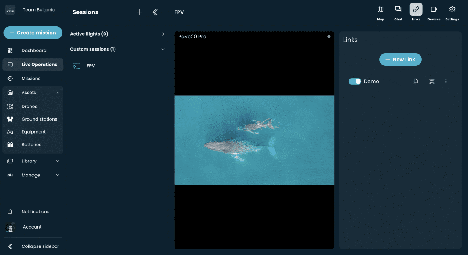 Once live, AirHub will ingest the video stream so your team can view it through the AirHub dashboard. You can share it with colleagues, embed it into secure portals, and record it for later analysis.
